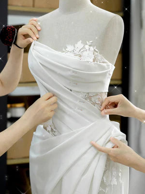 - Special Fitting Service: After pattern making is complete, we create a "mock dress", for additional $100 fee, for you to try on before crafting the actual gown, ensuring the perfect fit.